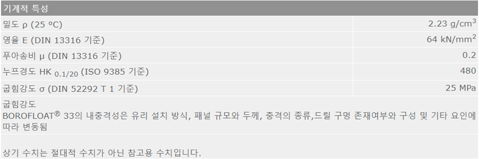 기계적 성질 < 제품의 특성 < BOROFLOAT® 33